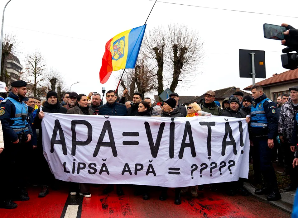 George Simion protestează la Curtea de Argeș alături de localnicii care nu au apă potabilă de patru luni: „Bolojan o ține în brațe pe Buzoianu”