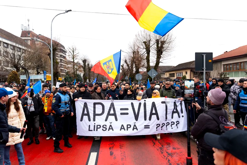 George Simion protestează la Curtea de Argeș alături de localnicii care nu au apă potabilă de patru luni: „Bolojan o ține în brațe pe Buzoianu”