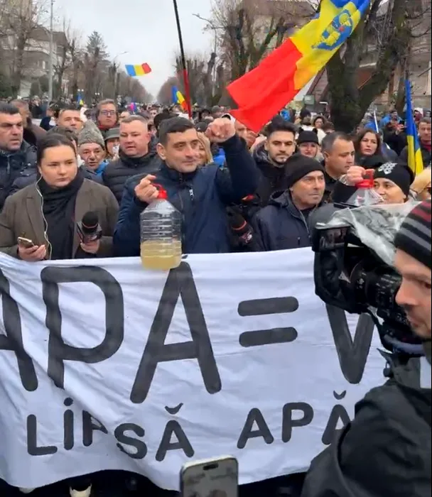 George Simion protestează la Curtea de Argeș alături de localnicii care nu au apă potabilă de patru luni: „Bolojan o ține în brațe pe Buzoianu”