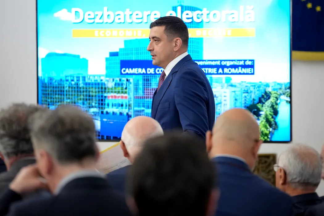 Candidatul prezidential George Simion participa la o dezbatere organizata de Camera de Comert si Industrie a Romaniei, marti, 13 mai 2025, in Bucuresti. ANDREEA ALEXANDRU / MEDIAFAX FOTO