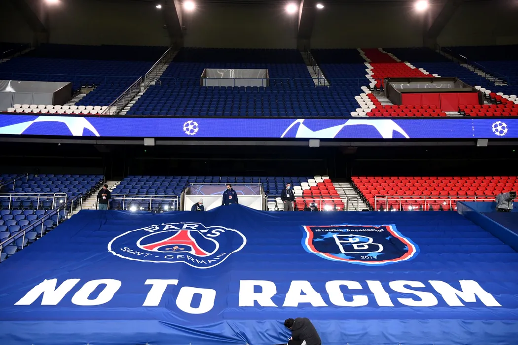 Gestul jucătorilor, înainte de reluarea partidei PSG-Bașakșehir! Aseară, au ieșit de pe teren după ce l-au acuzat pe arbitrul român Sebastian Colțescu de rasism (VIDEO)