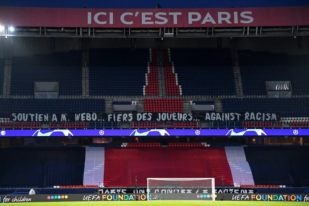 Gestul jucătorilor, înainte de reluarea partidei PSG-Bașakșehir! Aseară, au ieșit de pe teren după ce l-au acuzat pe arbitrul român Sebastian Colțescu de rasism (VIDEO)
