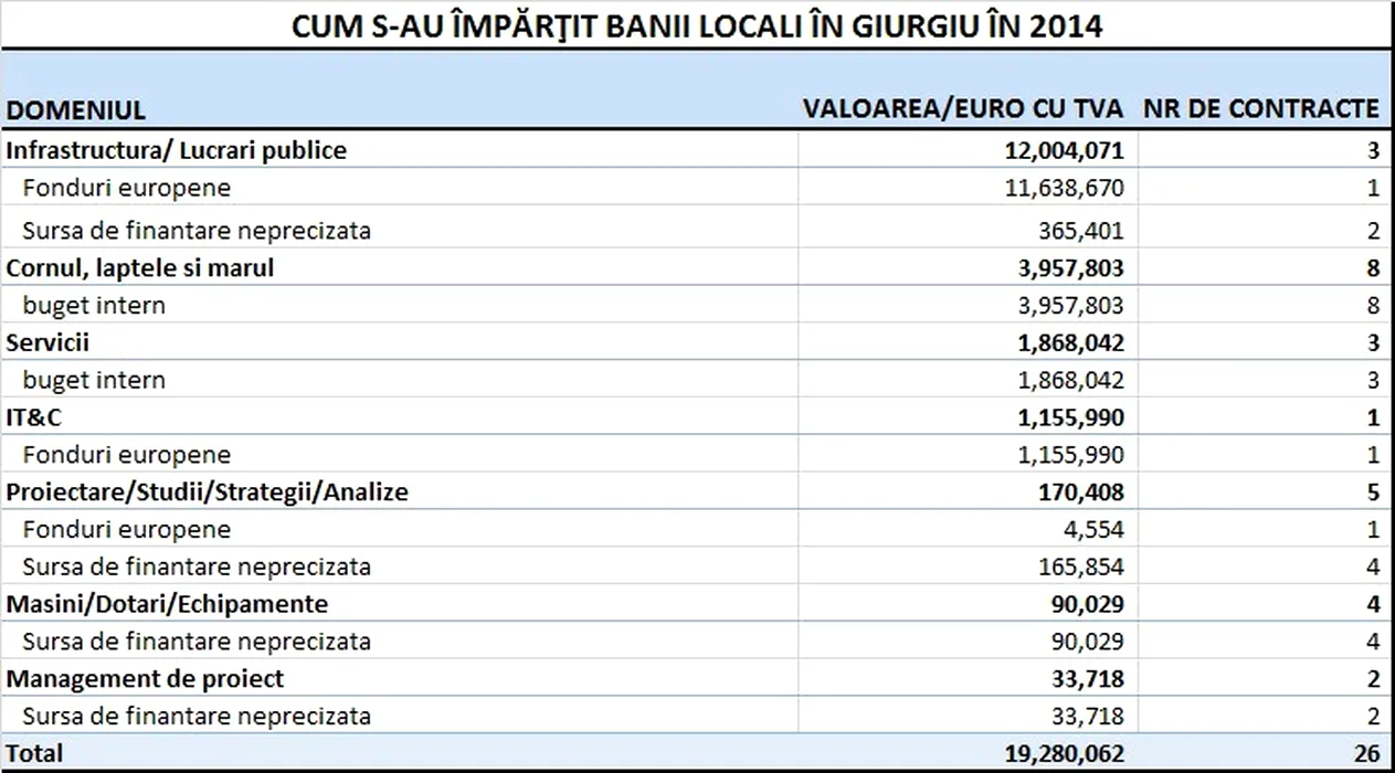 GIURGIU. Unde au mers banii publici în 2014. Topul firmelor care au contracte locale cu statul