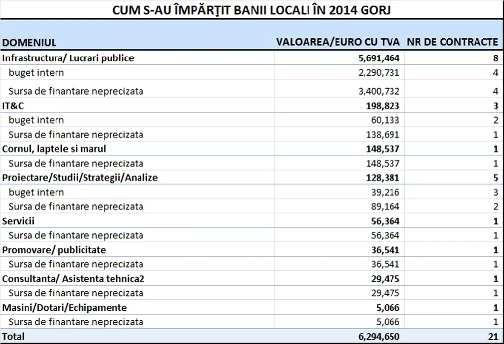 GORJ. Unde au mers banii publici în 2014. Topul firmelor care au contracte locale cu statul