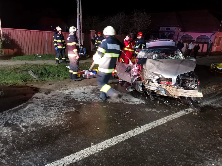 GALERIE FOTO. Grav accident de circulație pe o șosea din Mureș: Pasagerul unei mașini a murit și alți patru oameni au ajuns la spital
