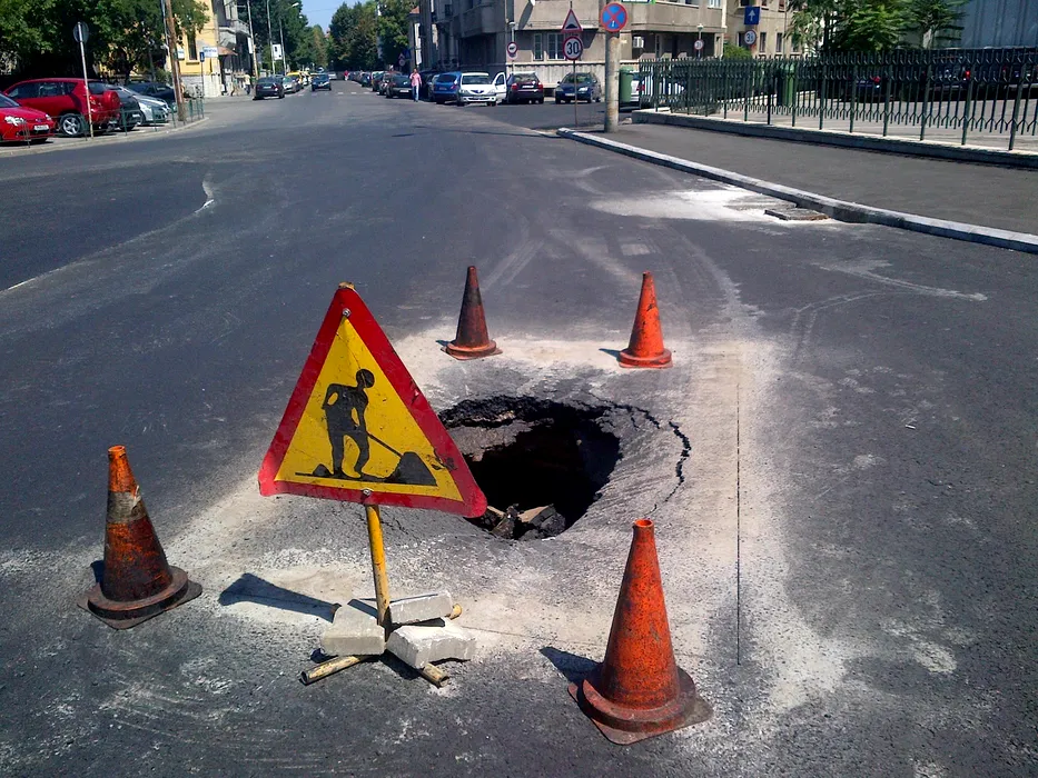 GALERIE FOTO: GROAPĂ de jumătate de metru, pe o stradă de lângă Guvern, la numai câteva zile de la asfaltare. FOTO