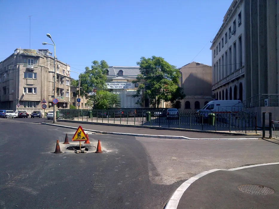 GROAPĂ de jumătate de metru, pe o stradă de lângă Guvern, la numai câteva zile de la asfaltare. FOTO