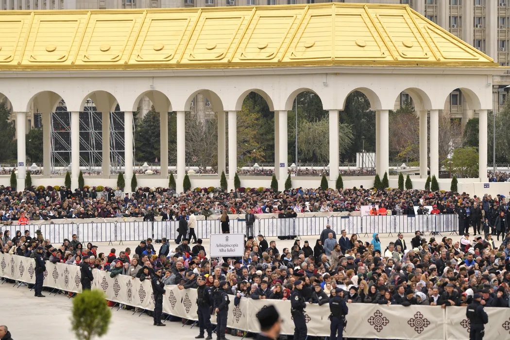 Pelerini asista la slujba de sfintire a picturii Catedralei Nationale din Bucuresti, oficiata de PF Daniel, Patriarhul Bisericii Ortodoxe Romane (BOR), si Patriarhul Ecumenic Bartolomeu I, duminica, 26 octombrie 2025. ALEXANDRU DOBRE / MEDIAFAX FOTO