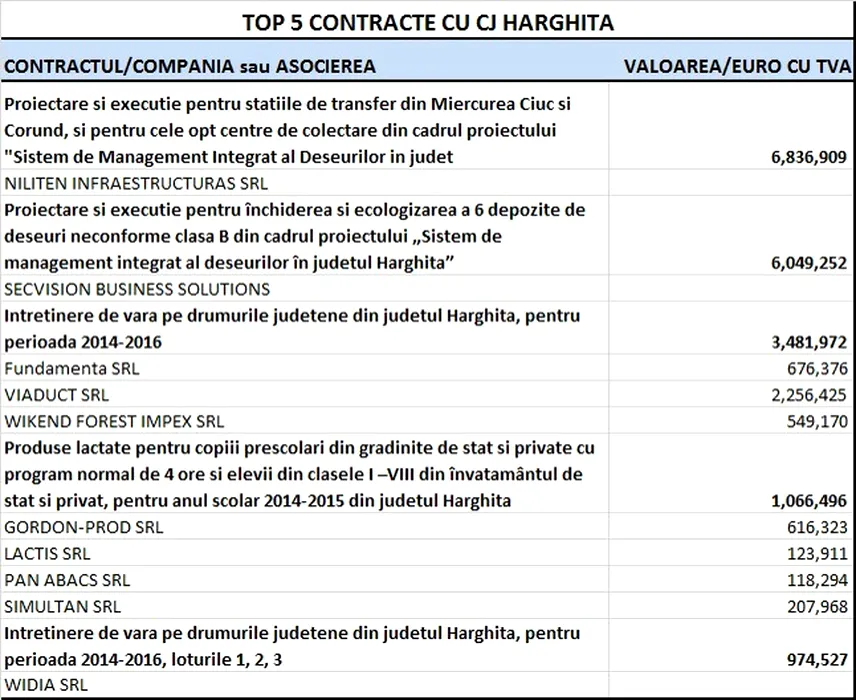 HARGHITA. Unde au mers banii publici în 2014. Topul firmelor care au contracte locale cu statul