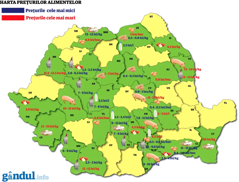 HARTA ALIMENTELOR. Cu cât ar trebui să se scumpească mâncarea de bază. Care sunt CELE MAI COSTISITOARE JUDEȚE