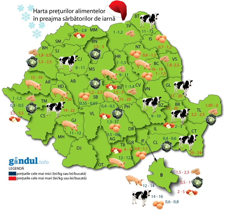 HARTA ALIMENTELOR. Topul județelor în care masa de Crăciun este mai scumpă decât anul trecut