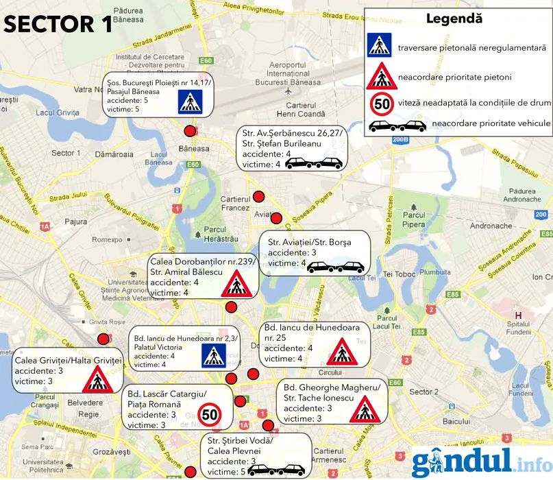 HARTA celor mai PERICULOASE 40 de INTERSECȚII din București. Care este „punctul negru” unde șoferii au avut cele mai multe accidente
