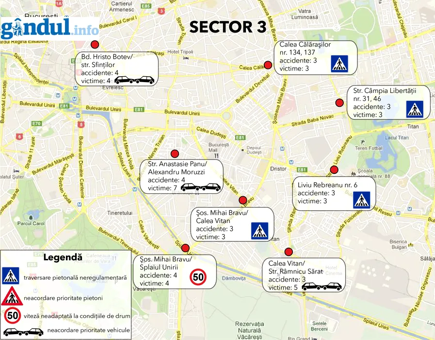 HARTA celor mai PERICULOASE 40 de INTERSECȚII din București. Care este „punctul negru” unde șoferii au avut cele mai multe accidente