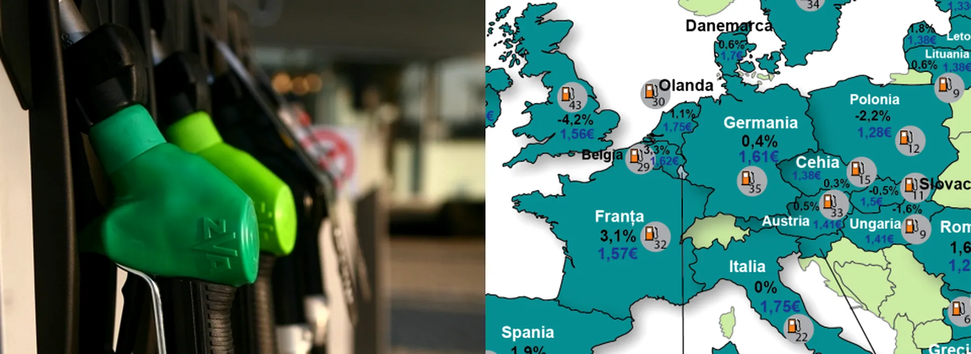 HARTA PREȚURILOR LA BENZINĂ. Cât plătesc românii pentru un litru de carburant comparativ cu cetățenii celorlalte state UE