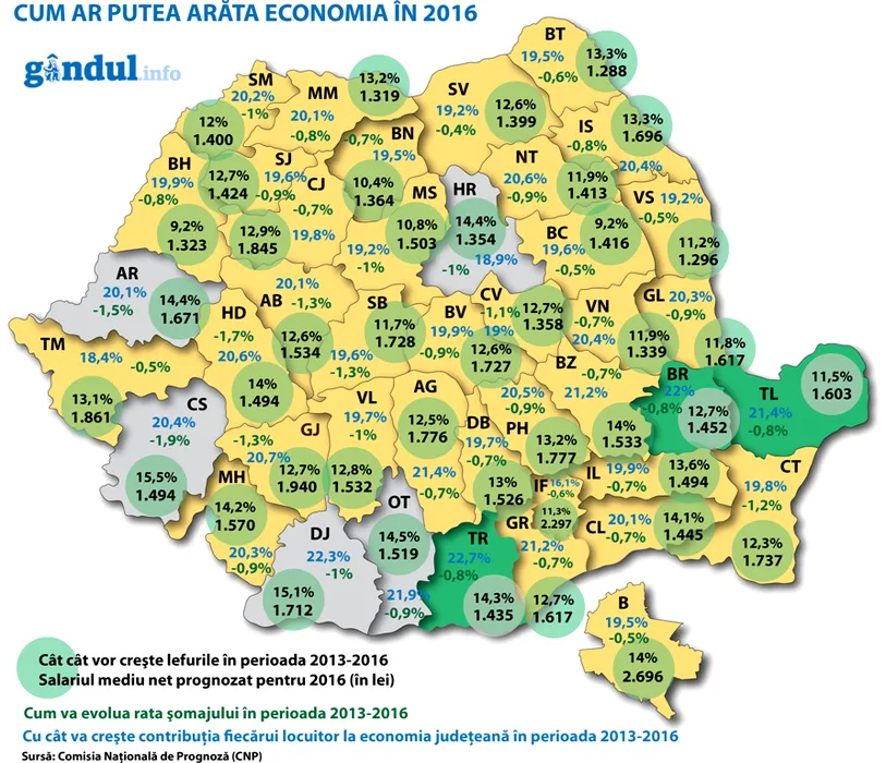 GALERIE FOTO: HARTA salariilor și a șomajului. Cum ar putea arăta economia României, județ cu județ, în următorii trei ani