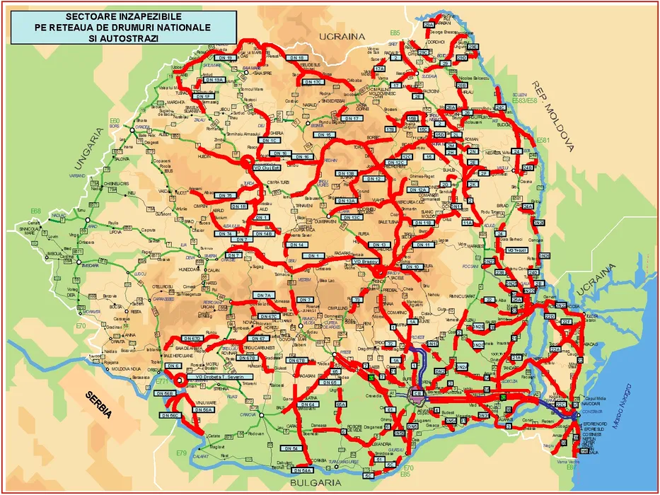 HARTA ȘOSELELOR care se pot bloca din cauza zăpezii. Autoritățile au verde de la Guvern să le ÎNCHIDĂ