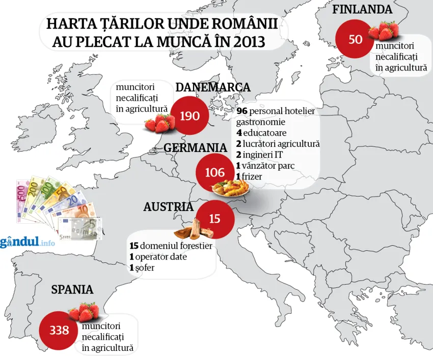 HARTA țărilor unde au plecat românii la muncă în 2013. Ce au căutat patronii străini