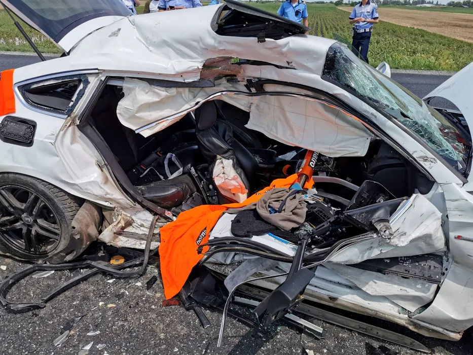 HORROR. Un Audi a fost făcut praf de o dubă la Slobozia. Șoferul mașinii de lux nu a acordat prioritate când a vrut să vireze la stânga! Imagini cu puternic impact emoțional