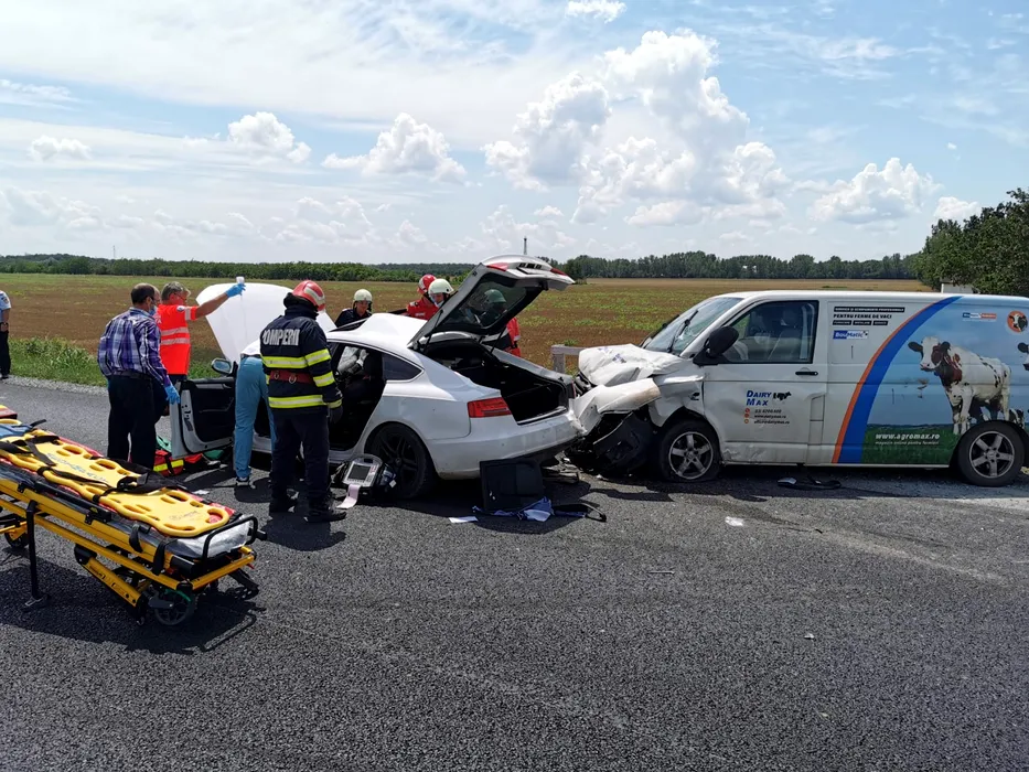 HORROR. Un Audi a fost făcut praf de o dubă la Slobozia. Șoferul mașinii de lux nu a acordat prioritate când a vrut să vireze la stânga! Imagini cu puternic impact emoțional