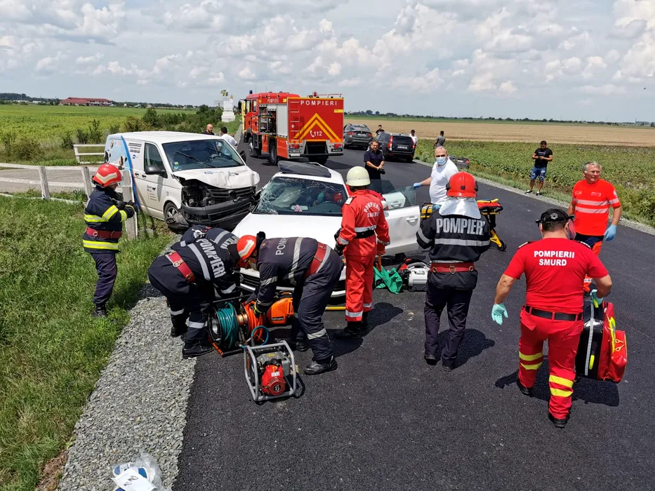 HORROR. Un Audi a fost făcut praf de o dubă la Slobozia. Șoferul mașinii de lux nu a acordat prioritate când a vrut să vireze la stânga! Imagini cu puternic impact emoțional