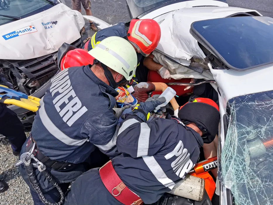 HORROR. Un Audi a fost făcut praf de o dubă la Slobozia. Șoferul mașinii de lux nu a acordat prioritate când a vrut să vireze la stânga! Imagini cu puternic impact emoțional