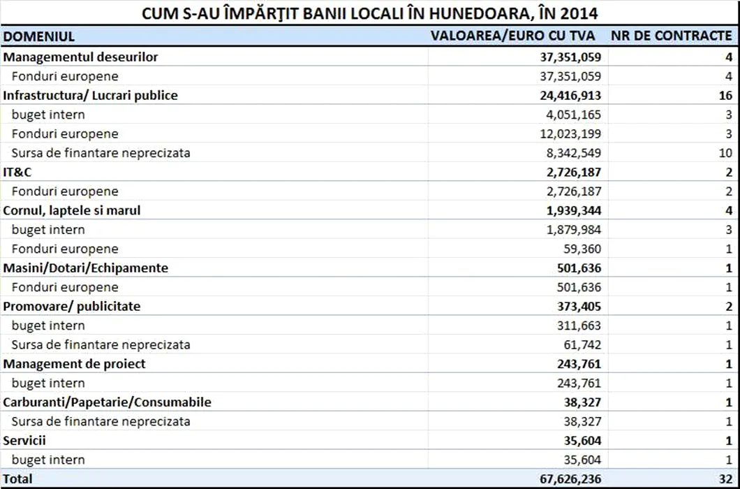 HUNEDOARA. Unde au mers banii publici în 2014. Topul firmelor care au contracte locale cu statul