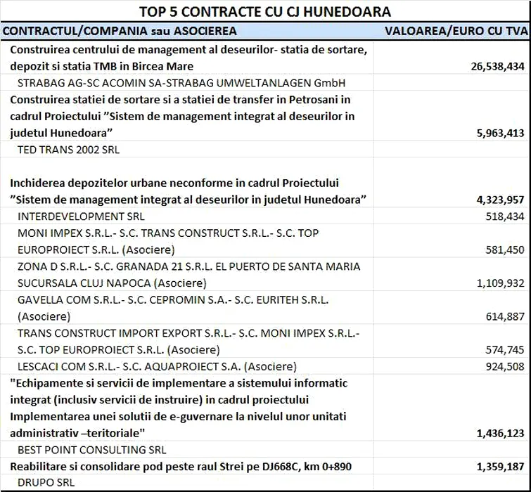 HUNEDOARA. Unde au mers banii publici în 2014. Topul firmelor care au contracte locale cu statul