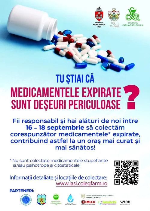 Ieșenii își pot duce medicamentele expirate la 11 puncte de colectare din oraș timp de trei zile. „Aruncarea medicamentelor la coșul de gunoi trebuie să dispară”