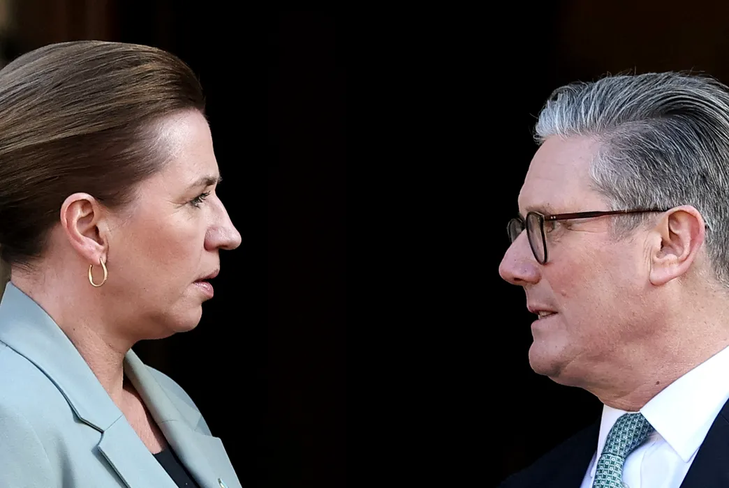 02 March 2025, United Kingdom, London: UK Prime Minister Sir Keir Starmer (R) welcomes Denmark's Prime Minister Mette Frederiksen to Lancaster House, for a European leaders' summit on the situation in Ukraine. Photo: Toby Melville/PA Wire/dpa
