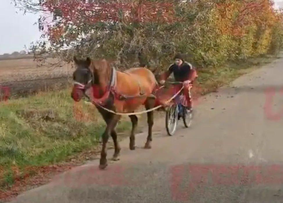 Imaginația unui vasluian nu are limite! A inventat bicicleta trasă de cal, pe care a inaugurat-o pe drumurile din jurul comunei. VIDEO FABULOS
