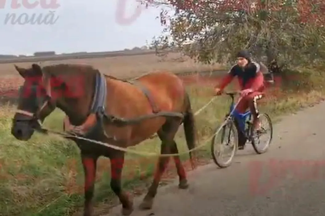 Imaginația unui vasluian nu are limite! A inventat bicicleta trasă de cal, pe care a inaugurat-o pe drumurile din jurul comunei. VIDEO FABULOS