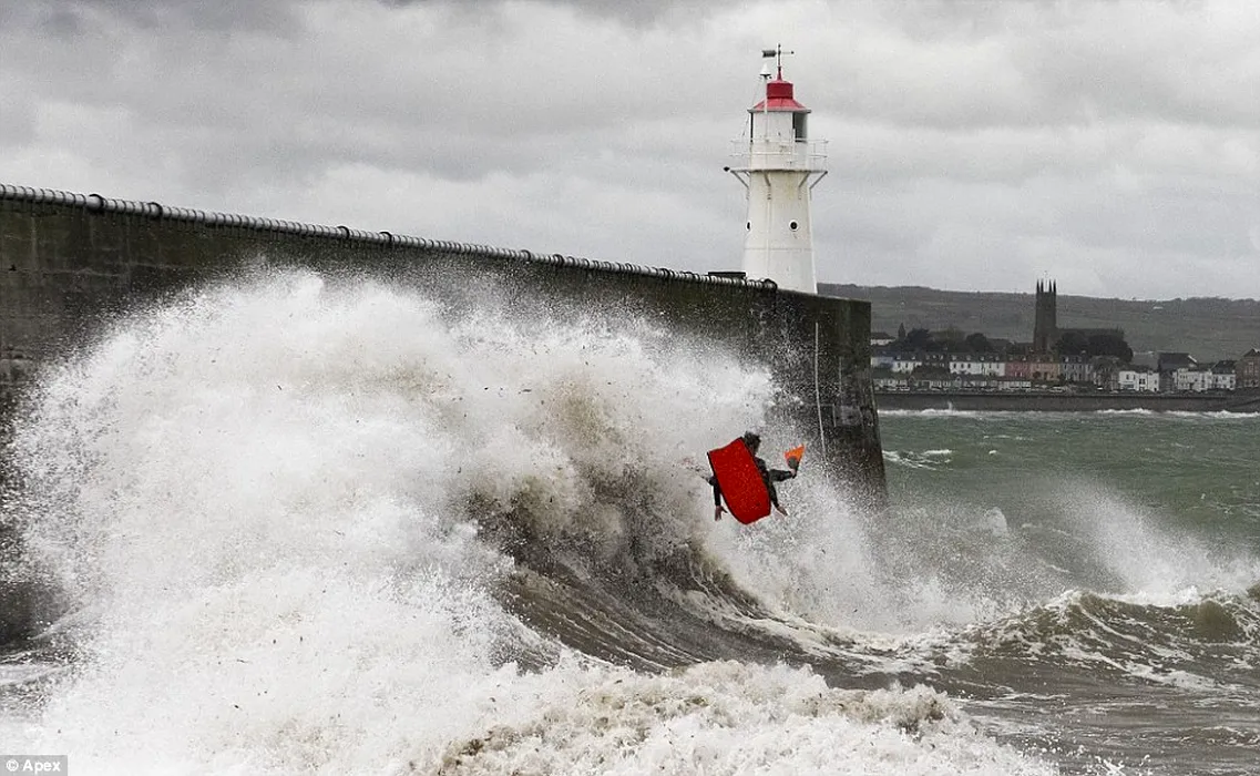 Imaginea inconștienței. Au făcut surfing în apropierea unui dig
