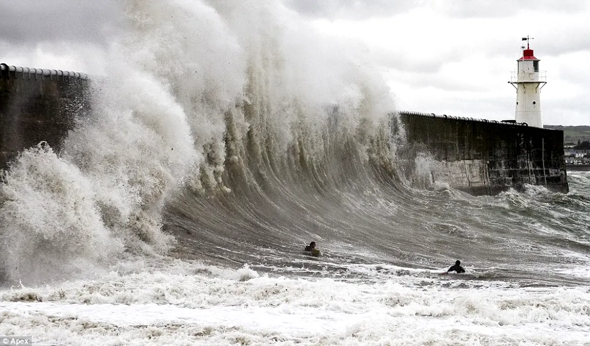 Imaginea inconștienței. Au făcut surfing în apropierea unui dig