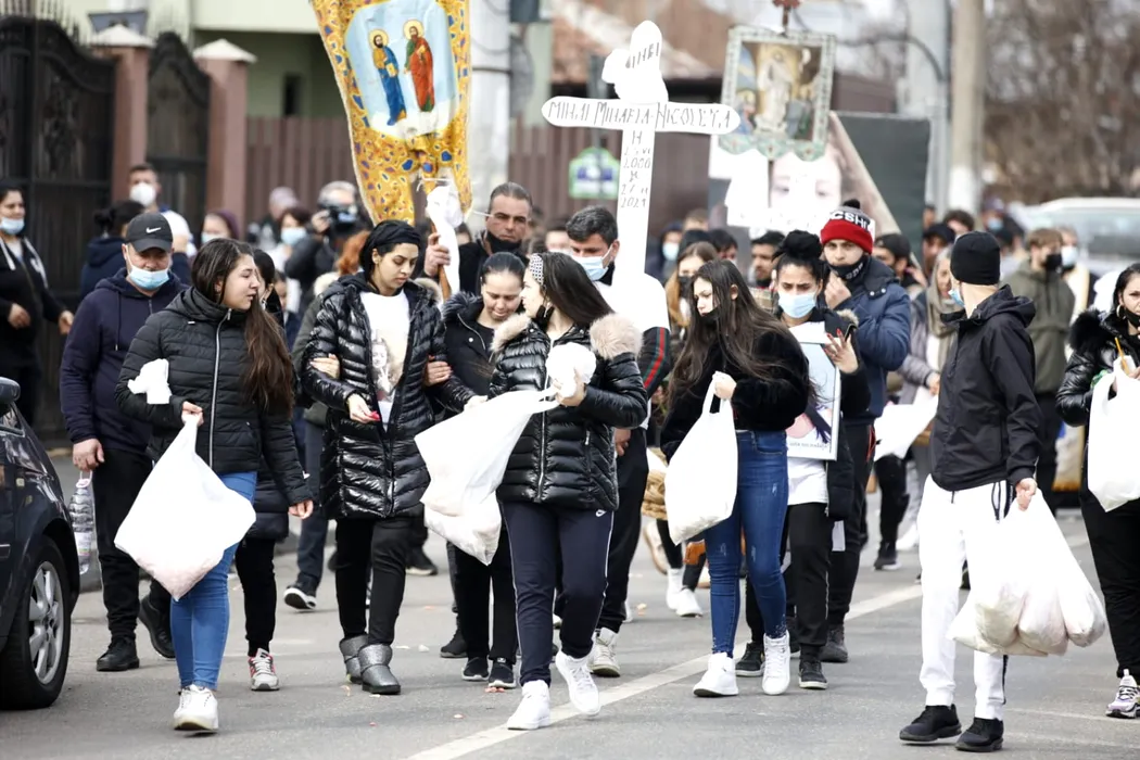 Imagini copleșitoare de la înmormântarea celor două fete ucise în accidentul din Andronache / FOTO+VIDEO