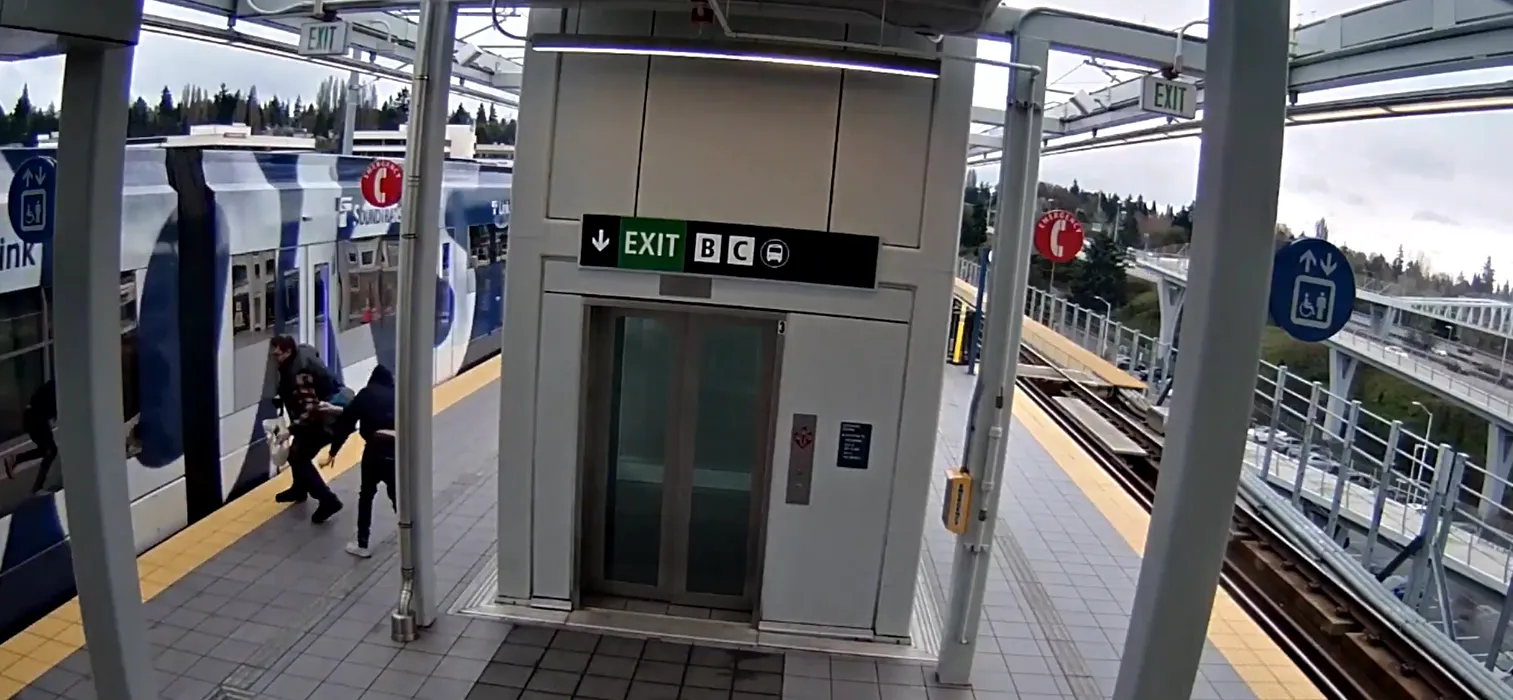 Imagini cu clipele de teroare pe care le-a trăit un călător care aproape a fost împins în fața trenului de un alt bărbat