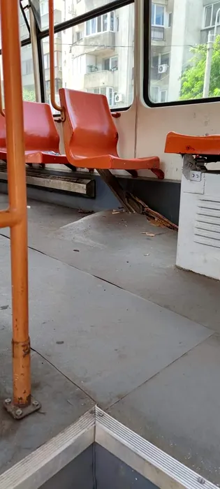Imagini cu „Tramvaiul Groazei” care a fost străpuns de o șină și a rănit un călător. „Nu mai sunt electrozi de sudat liniile de o lună”
