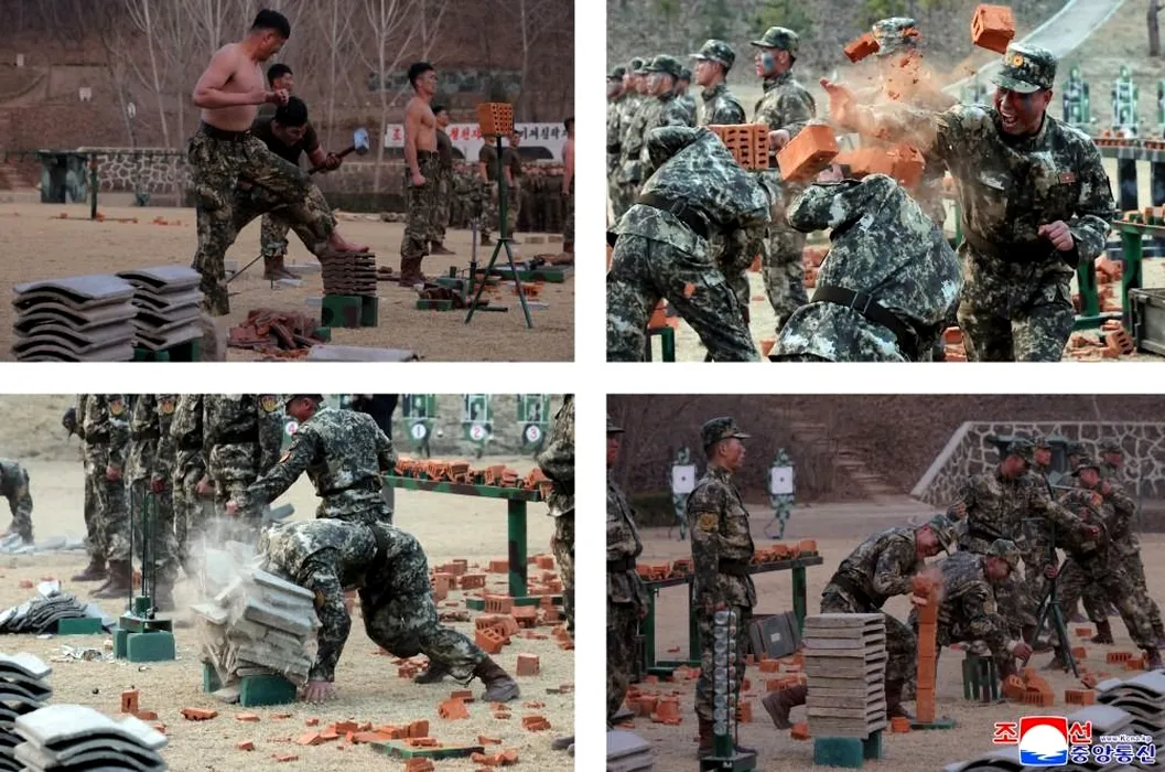 Imagini de la antrenamentele soldaților nord-coreeni. Militarii sparg cărămizi cu capul sub privirile lui Kim Jong Un