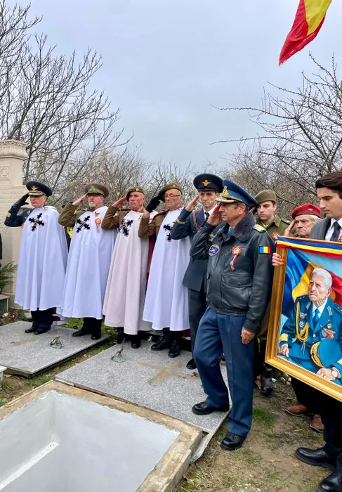 Imagini de la înmormântarea generalului Theodoru, cercetat la vârsta de 101 ani pentru „răsturnarea ordinii constituționale”. Un participant a venit în armură medievală. Discurs controversat al fiicei