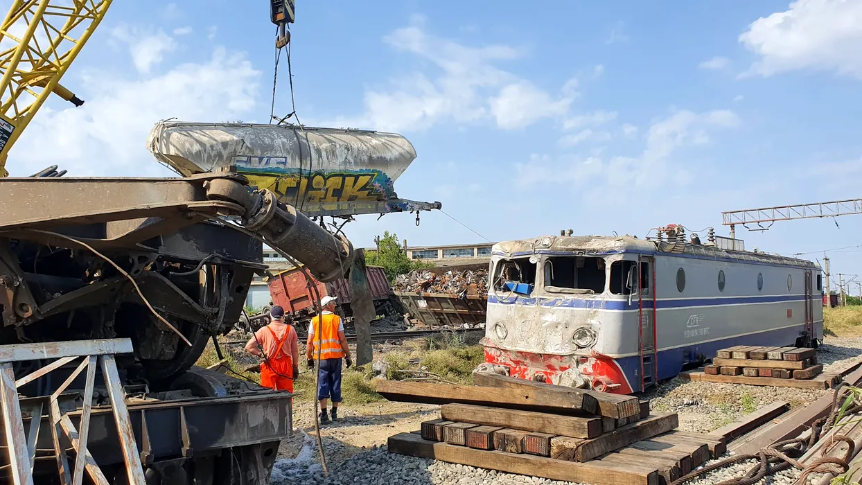 Imagini de la intervențiile din stația Fetești, care sunt în plină desfășurare. Până acum, s-a reușit degajarea unui fir pentru locomotivele electrice (FOTO)