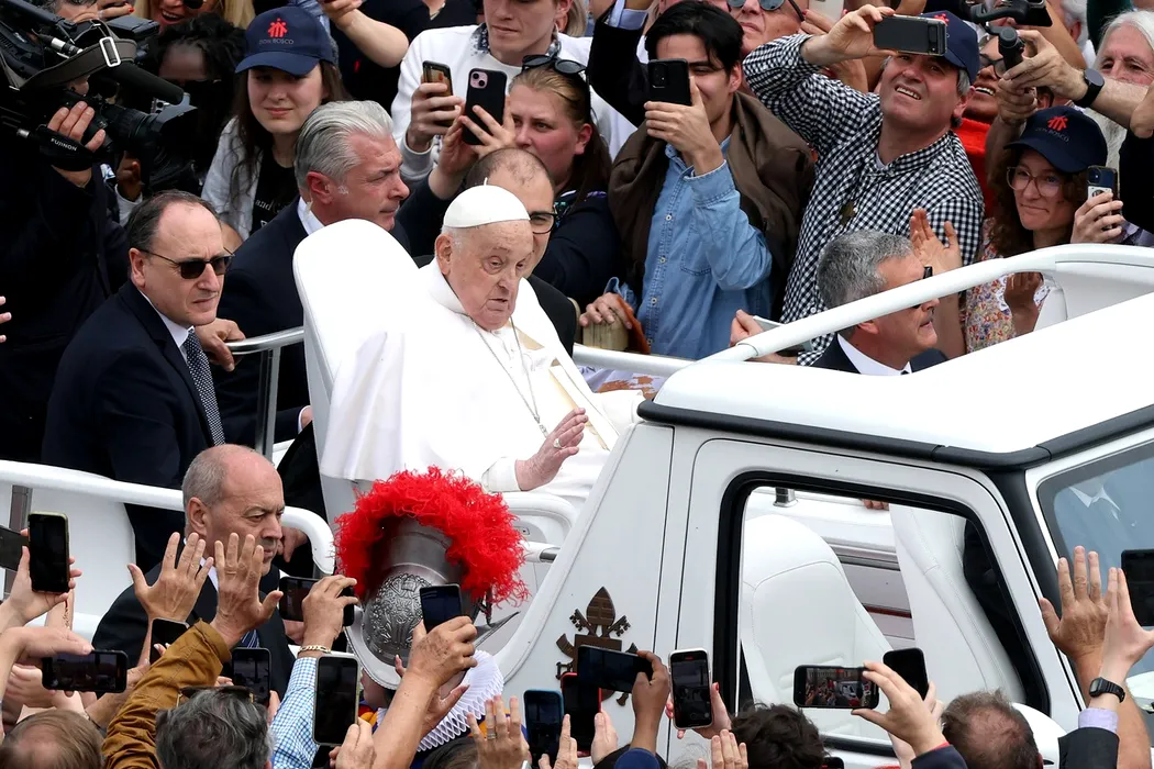 Vatican City , Italy 20.05.2025: Pope Francis on the Popemobile tours the square at the end of the Holy Mass on Easter Sunday and “Urbi et Orbi” Blessing in Saint Peter’s Square in Rome.-IPA / ipa-agency.net - //IPAPRESSITALY_10490355/Credit:marco iacobucci/IPA/SIPA/2504211134,Image: 990544061, License: Rights-managed, Restrictions: , Model Release: no