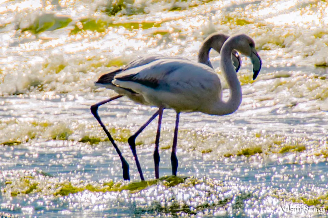 Imagini de poveste în România! Păsări Flamingo, plimbându-se agale pe malul lacului