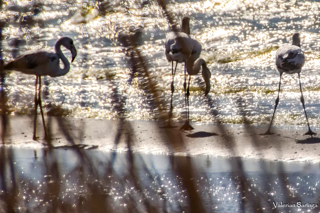 Imagini de poveste în România! Păsări Flamingo, plimbându-se agale pe malul lacului