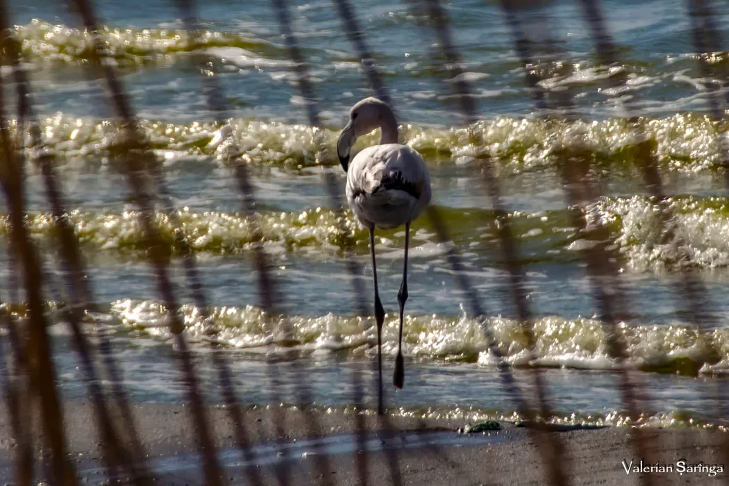 Imagini de poveste în România! Păsări Flamingo, plimbându-se agale pe malul lacului