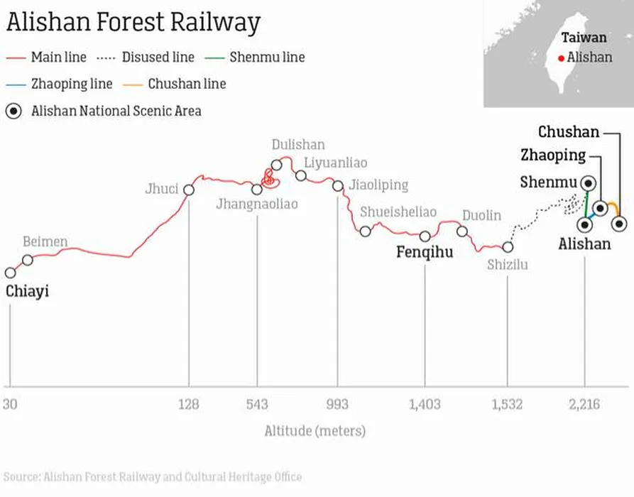 IMAGINI DE VIS cu linia ferată din Munții Alishan. Are peste 70 de kilometri și a fost lansată în urmă cu 106 ani