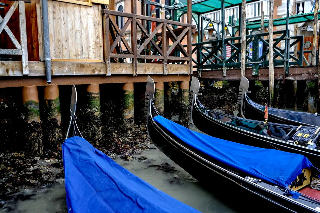 GALERIE FOTO: Imagini dezolante din „Orașul Podurilor”. Canalele din Veneția au secat, provocând haos