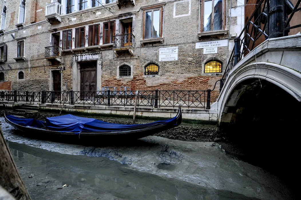 Imagini dezolante din „Orașul Podurilor”. Canalele din Veneția au secat, provocând haos