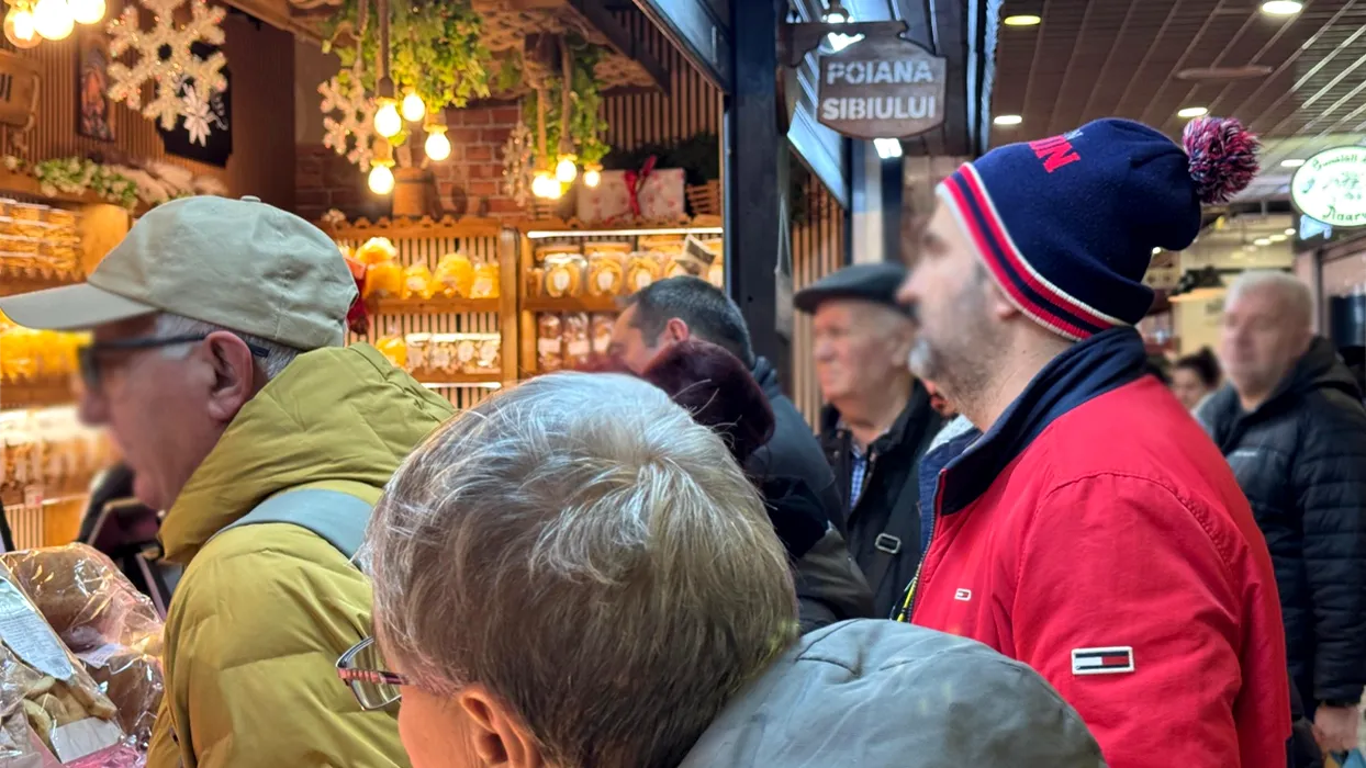 Imagini din Piața Obor, kilometrul zero al comerțului agroalimentar românesc. Oamenii stau cu zecile de minute la cozi, cu geamantane pe care să le umple cu carne și brânzeturi. Totul pe acordurile colindătorilor