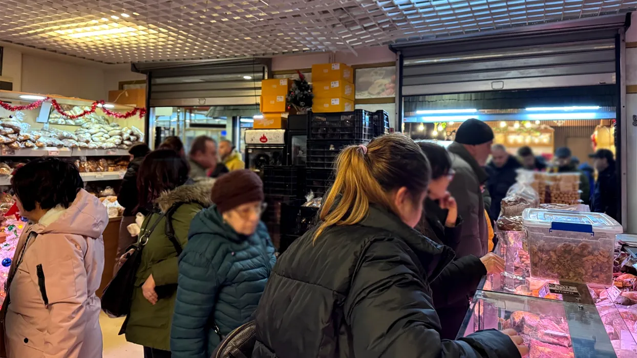 Imagini din Piața Obor, kilometrul zero al comerțului agroalimentar românesc. Oamenii stau cu zecile de minute la cozi, cu geamantane pe care să le umple cu carne și brânzeturi. Totul pe acordurile colindătorilor