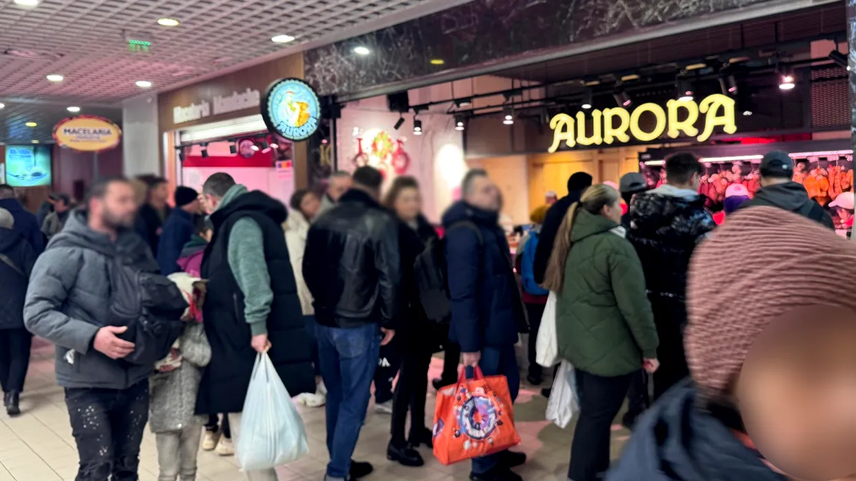 Imagini din Piața Obor, kilometrul zero al comerțului agroalimentar românesc. Oamenii stau cu zecile de minute la cozi, cu geamantane pe care să le umple cu carne și brânzeturi. Totul pe acordurile colindătorilor