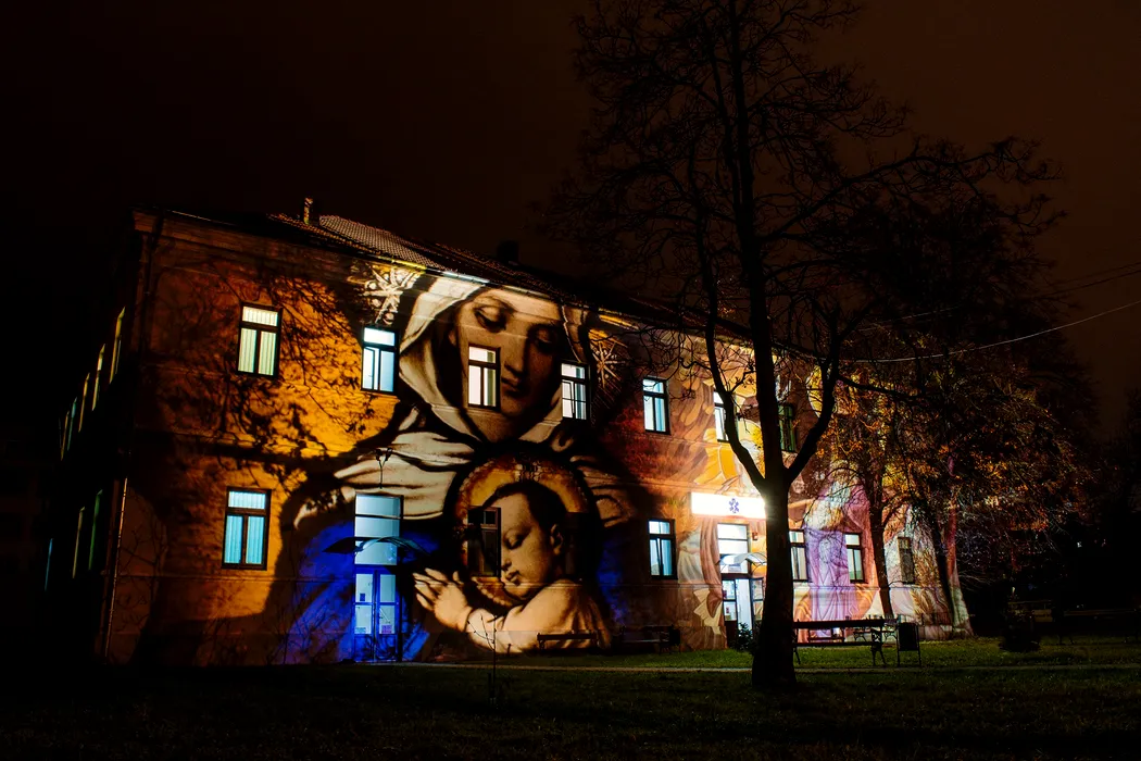 Imagini emoționante cu medici din prima linie au fost proiectate pe mai multe clădiri din Satu Mare / GALERIE FOTO